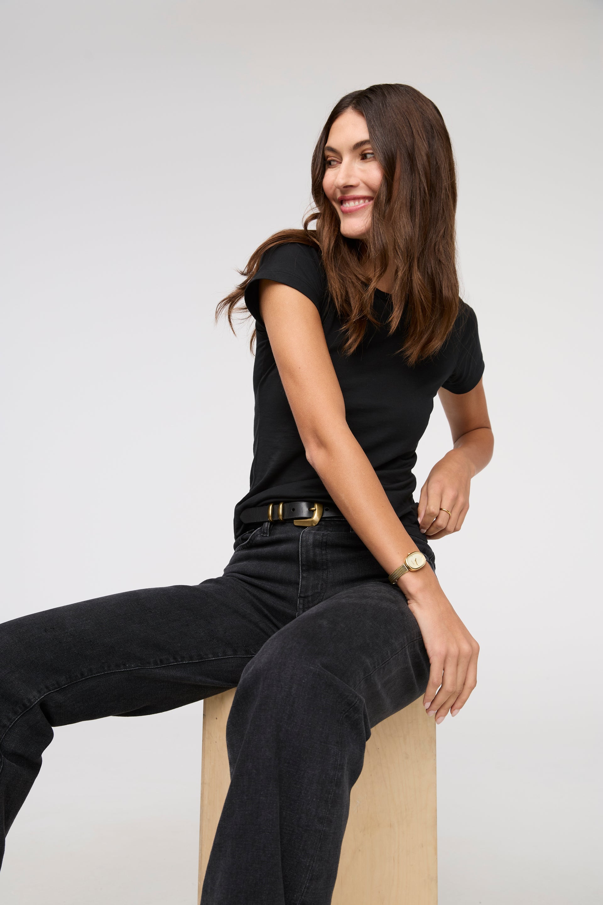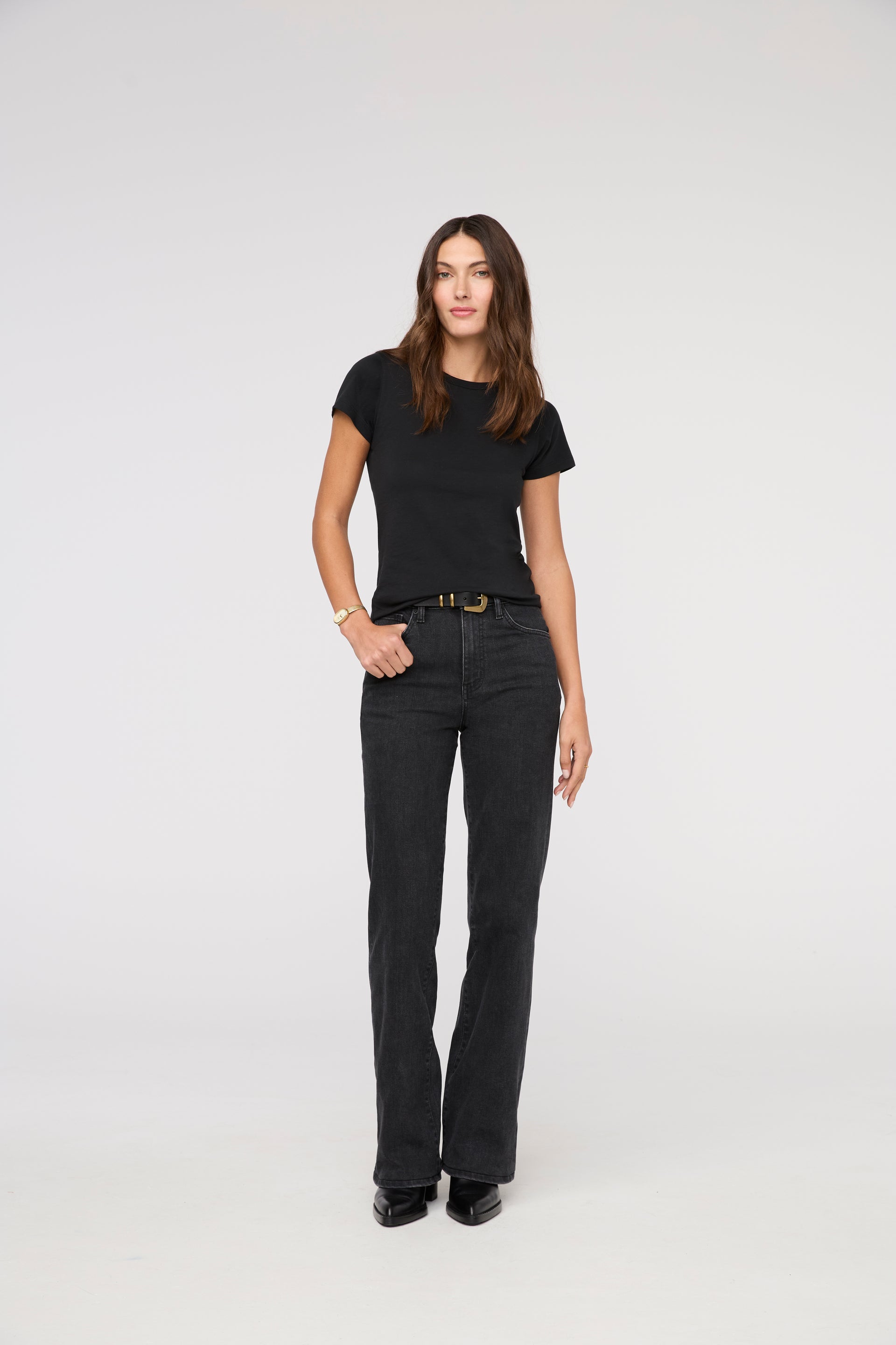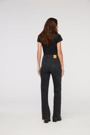 In our midweight denim offering just the right amount of stretch for a broken-in feel, this retro-inspired silhouette is designed to contour the behind and highlight the waist, while the flare elongates the legs. Complete with bar tacks for the option to customize the length. The midweight performance denim has a minimal amount of stretch which means it will soften with wear and as you move through your day.