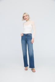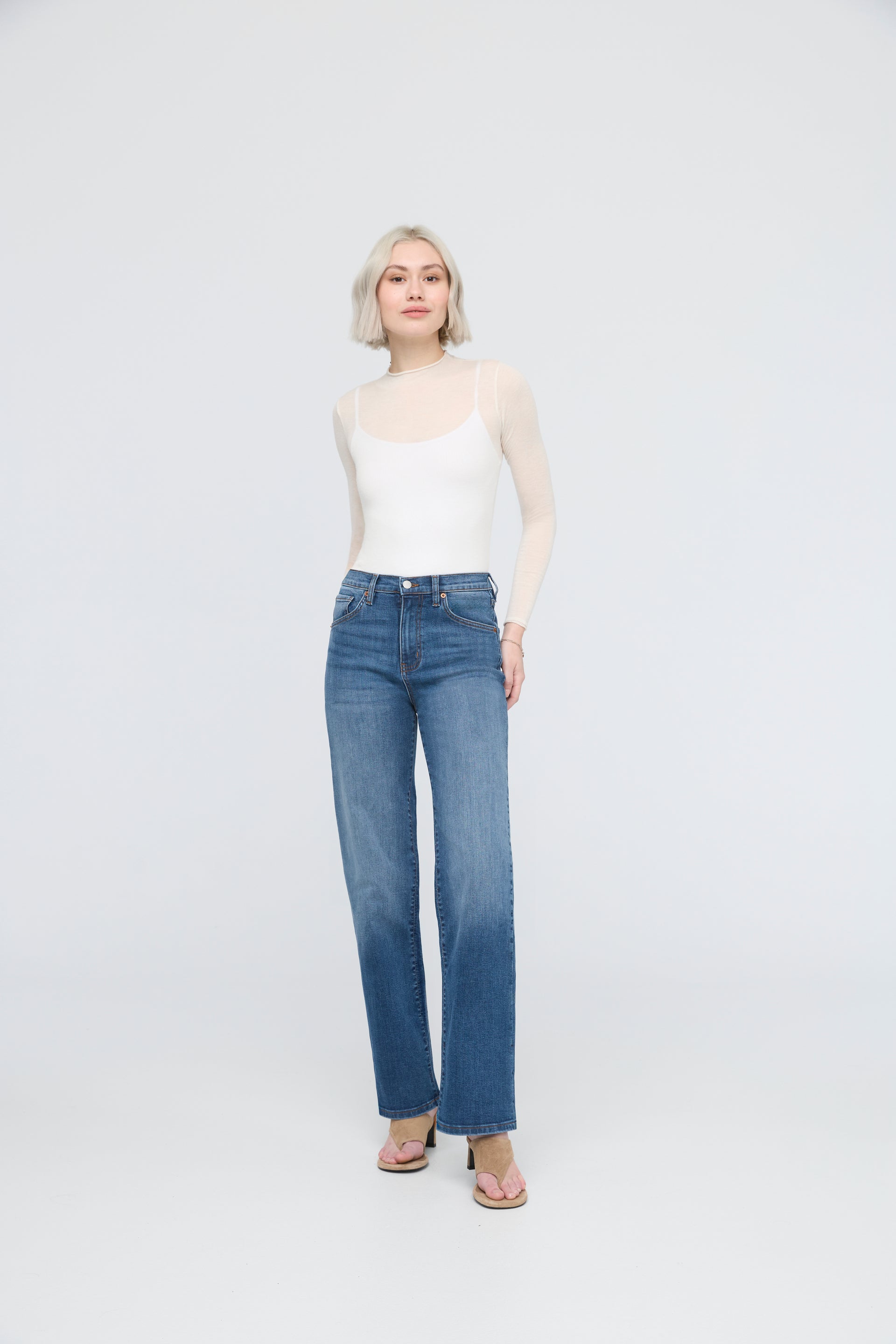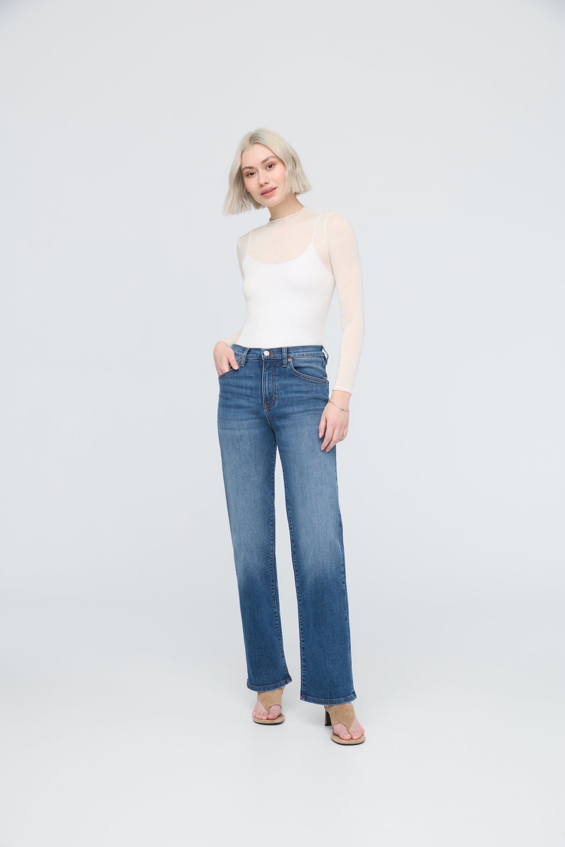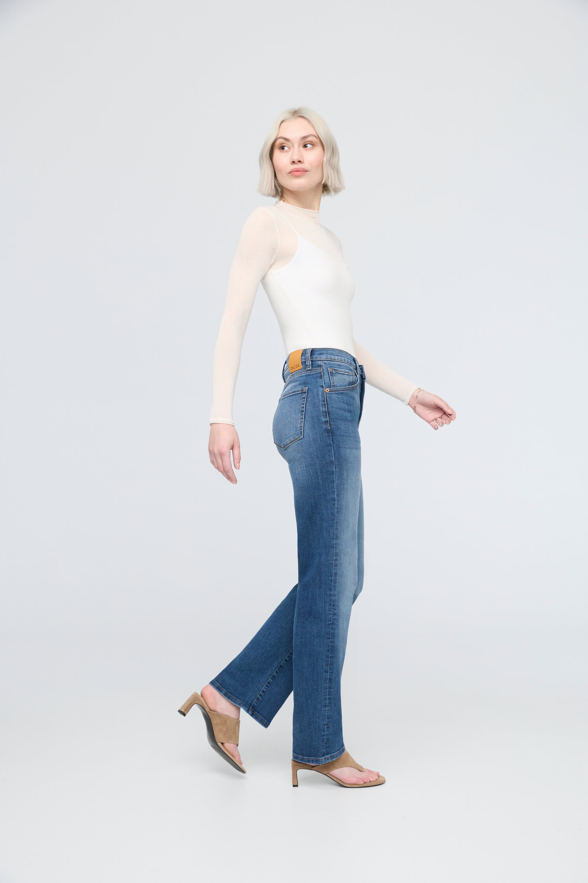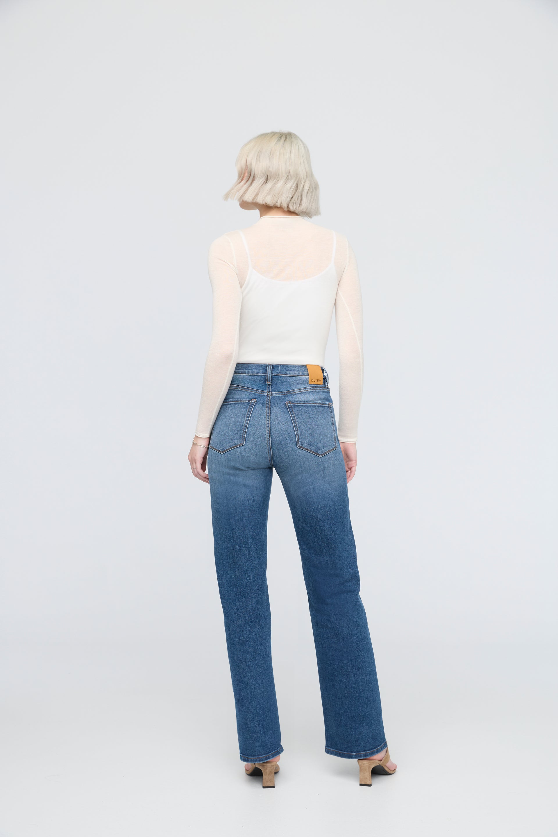 Crafted from a weightier version of our signature Performance Denim, the High Rise Straight offers added structure without sacrificing a flexible fit. The retro-inspired silhouette is designed to contour the behind and highlight the waist, while the wide straight leg elongates the body. Complete with bar tacks so you can customize the length for a perfect fit.