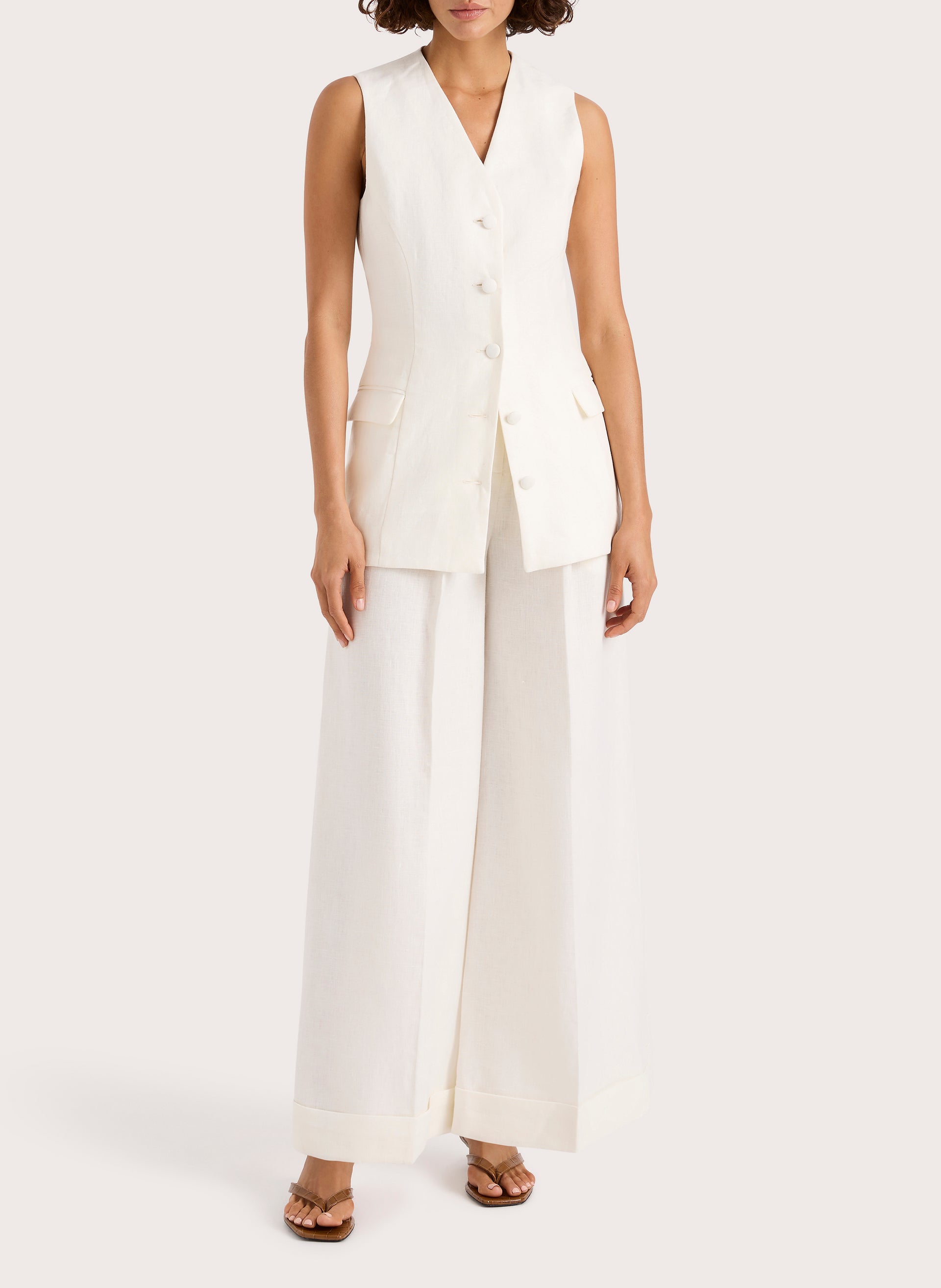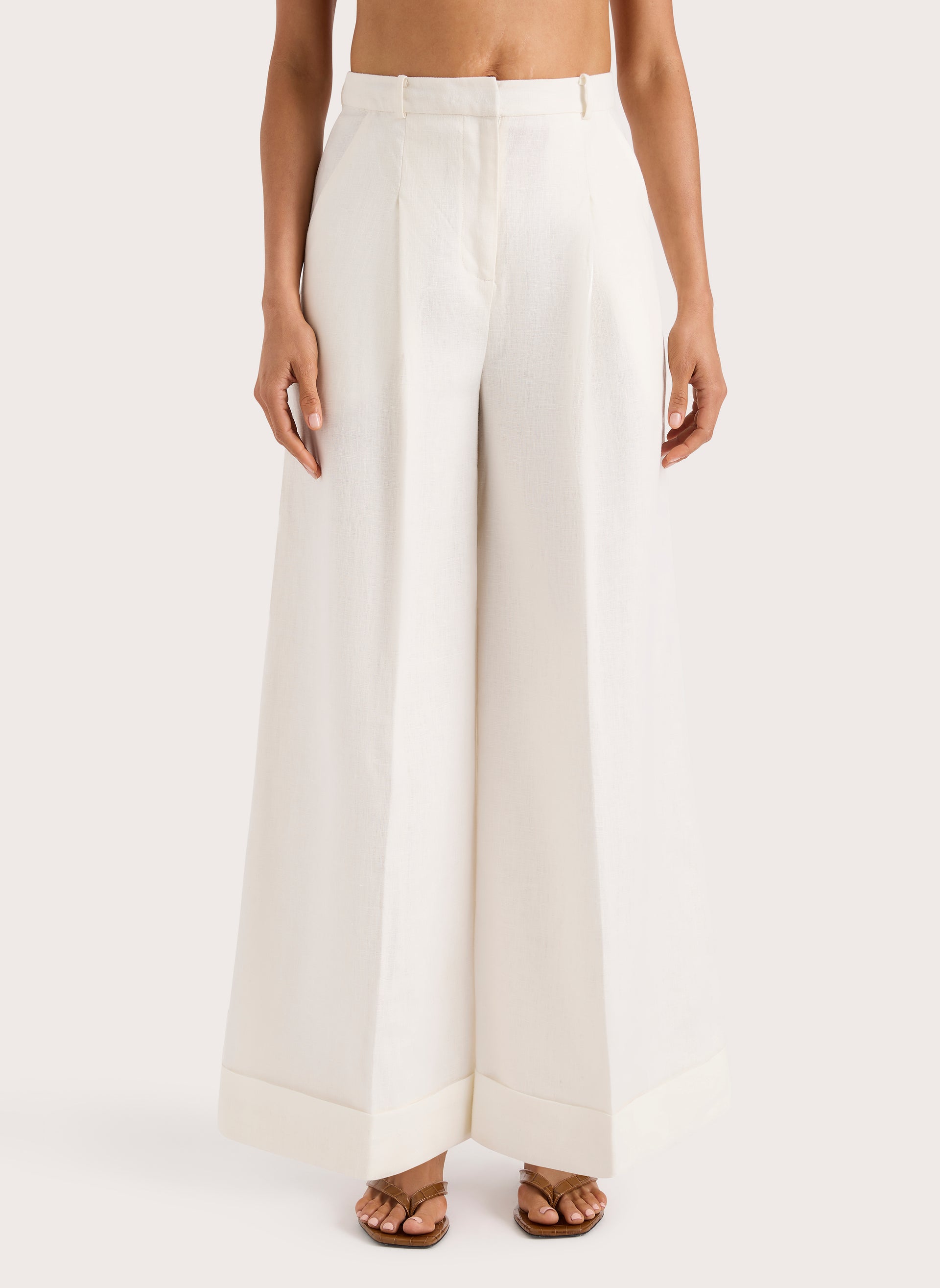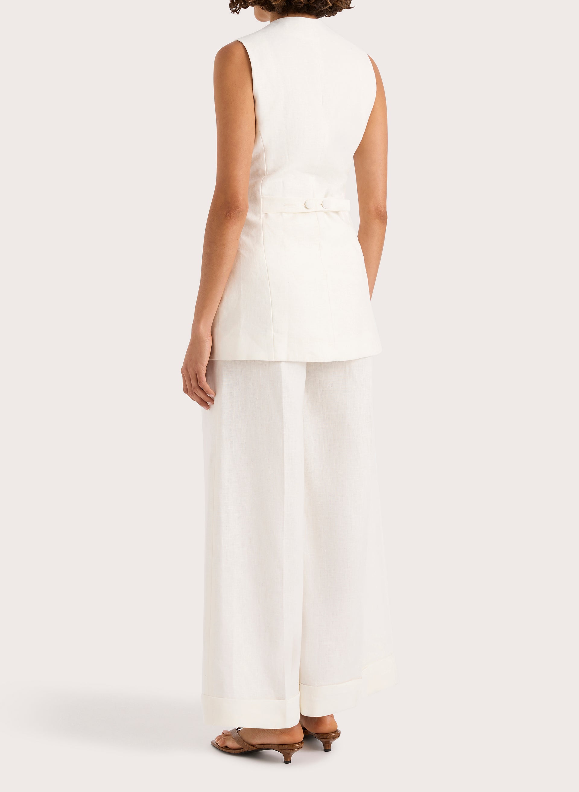 Discover the perfect combination of comfort and sophistication with the Clove Trouser by Faithful. These full-length pants are made from high-quality linen fabric and feature a high waist and pleat front for a flattering silhouette. The wide leg, side seam pockets, and cuffed hem add functional and stylish elements to this unlined pant. Elevate your wardrobe with the Clove Trouser.