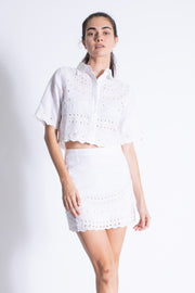 Crafted with 100% linen, the Malaga Embroidered Shirt offers a breathable and lightweight option for your wardrobe. Featuring a sophisticated embroidered design and a flattering cropped style, this button down shirt is perfect the warmer months. Style with the matching Malaga embroidered skirt.