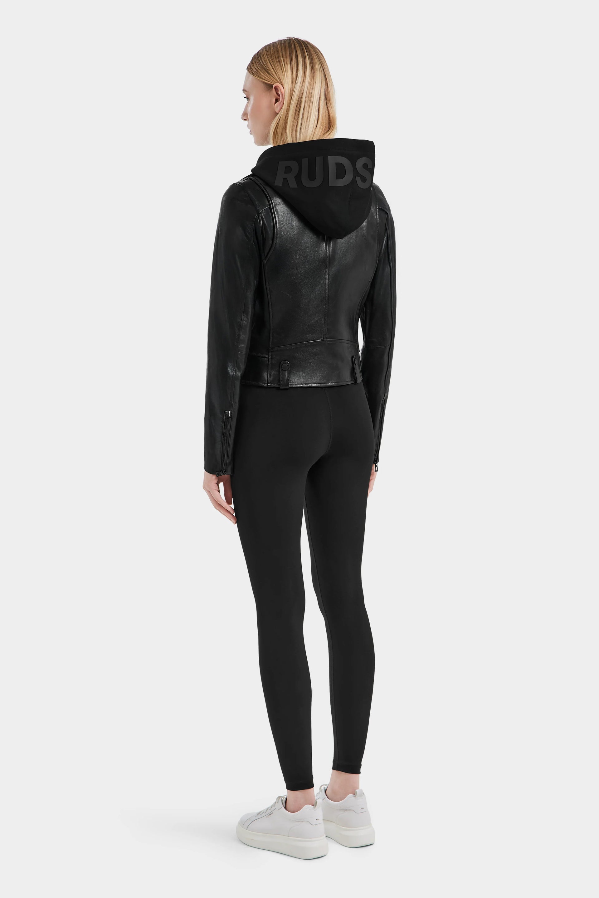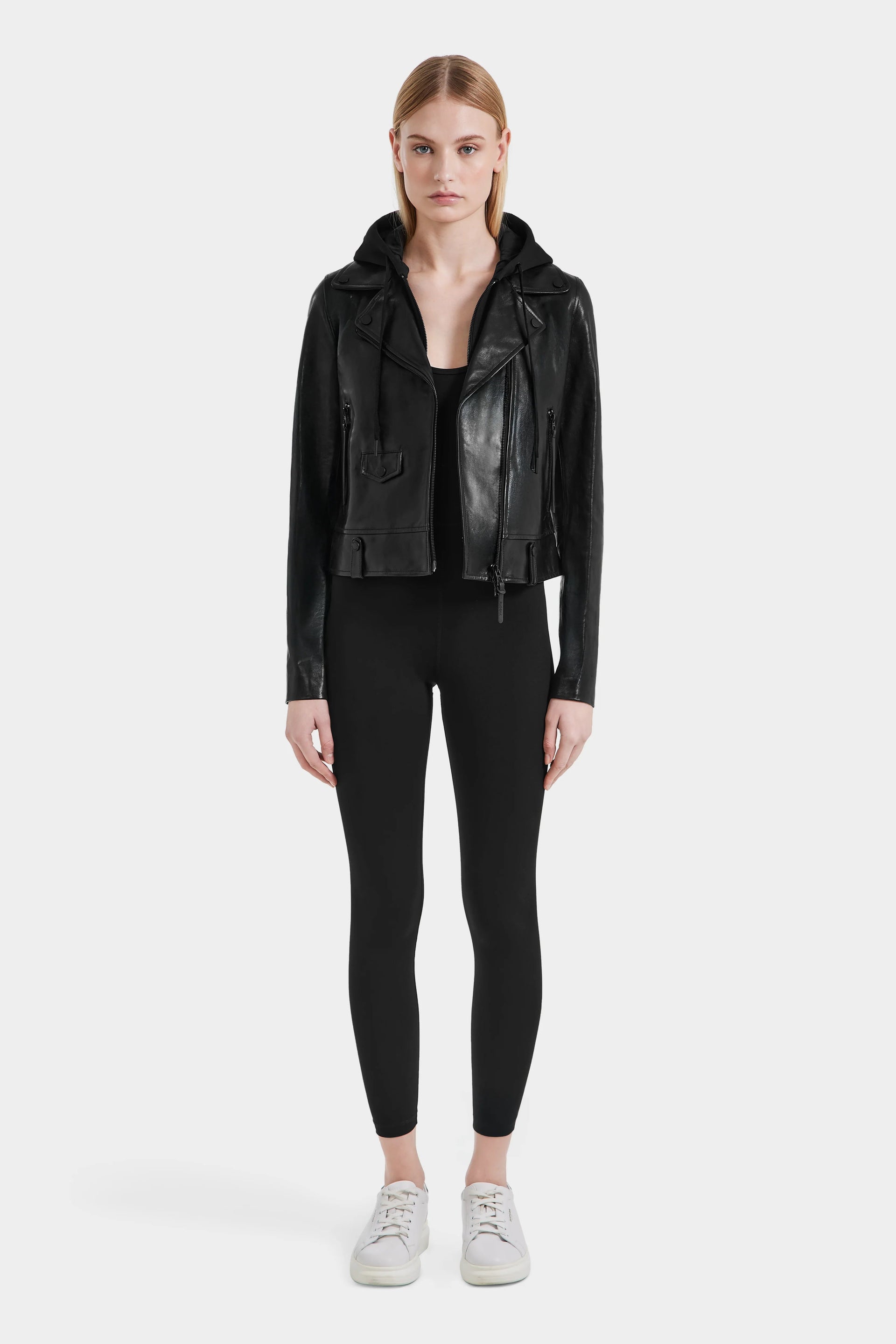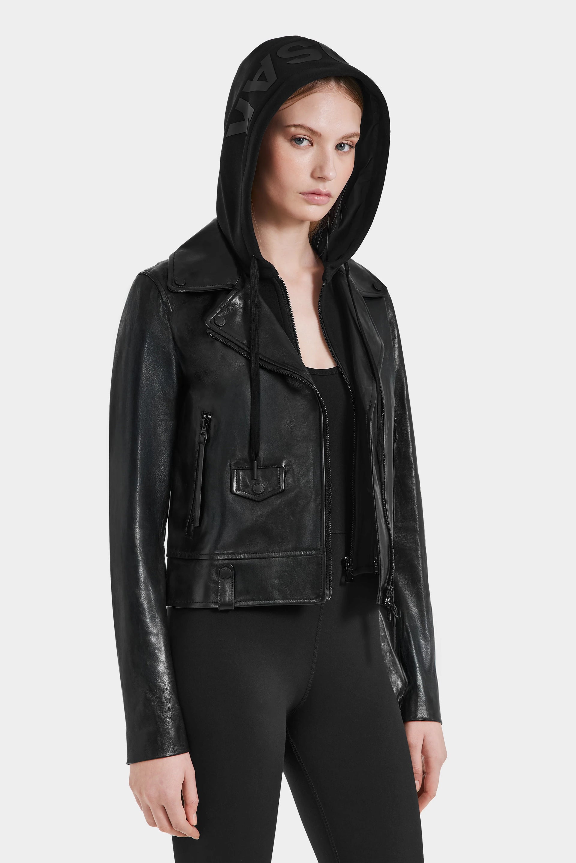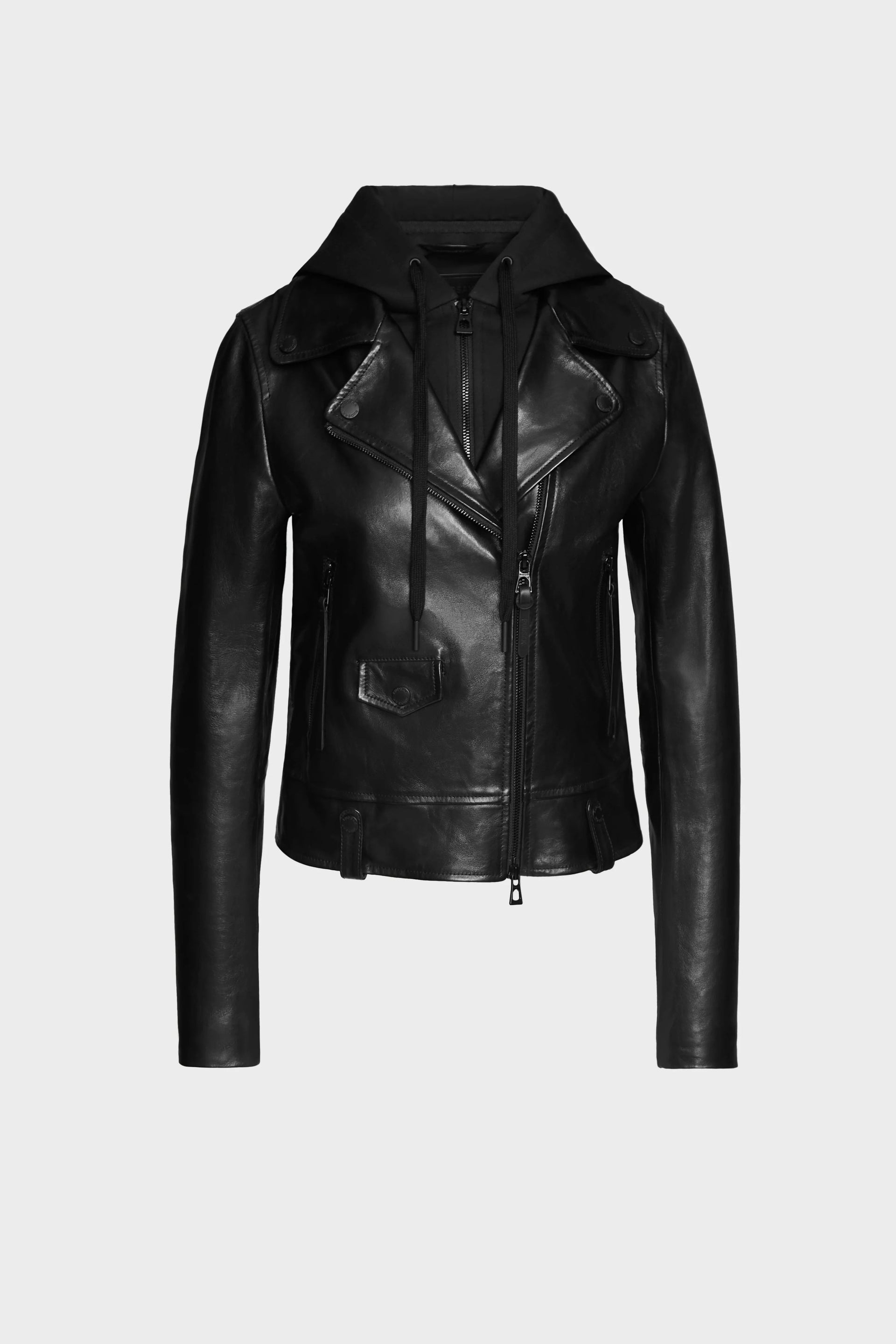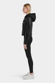 The Malak by Rudsak is a women's biker jacket crafted from premium leather with a luxurious lustrous sheen. Featuring a removable inner hood and tonal hardware, this jacket combines practicality with timeless style. Its classic design ensures it will be a wardrobe staple for seasons to come, improving with every wear. The perfect layer for adding edge to any outfit, the MALAK jacket offers sleek sophistication and endless styling possibilities.