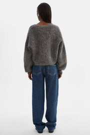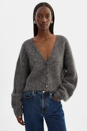 The MINNIE Knit Cardigan blends softness and structure in the most effortless way. Made from a cozy brushed alpaca knit, it features a deep V neckline, dropped shoulders, and a slightly cropped silhouette. Finished with tonal buttons and wide sleeves, it's your new go-to for layering with ease and texture.