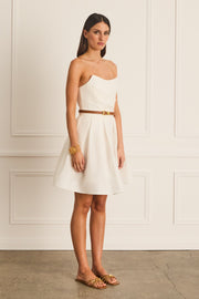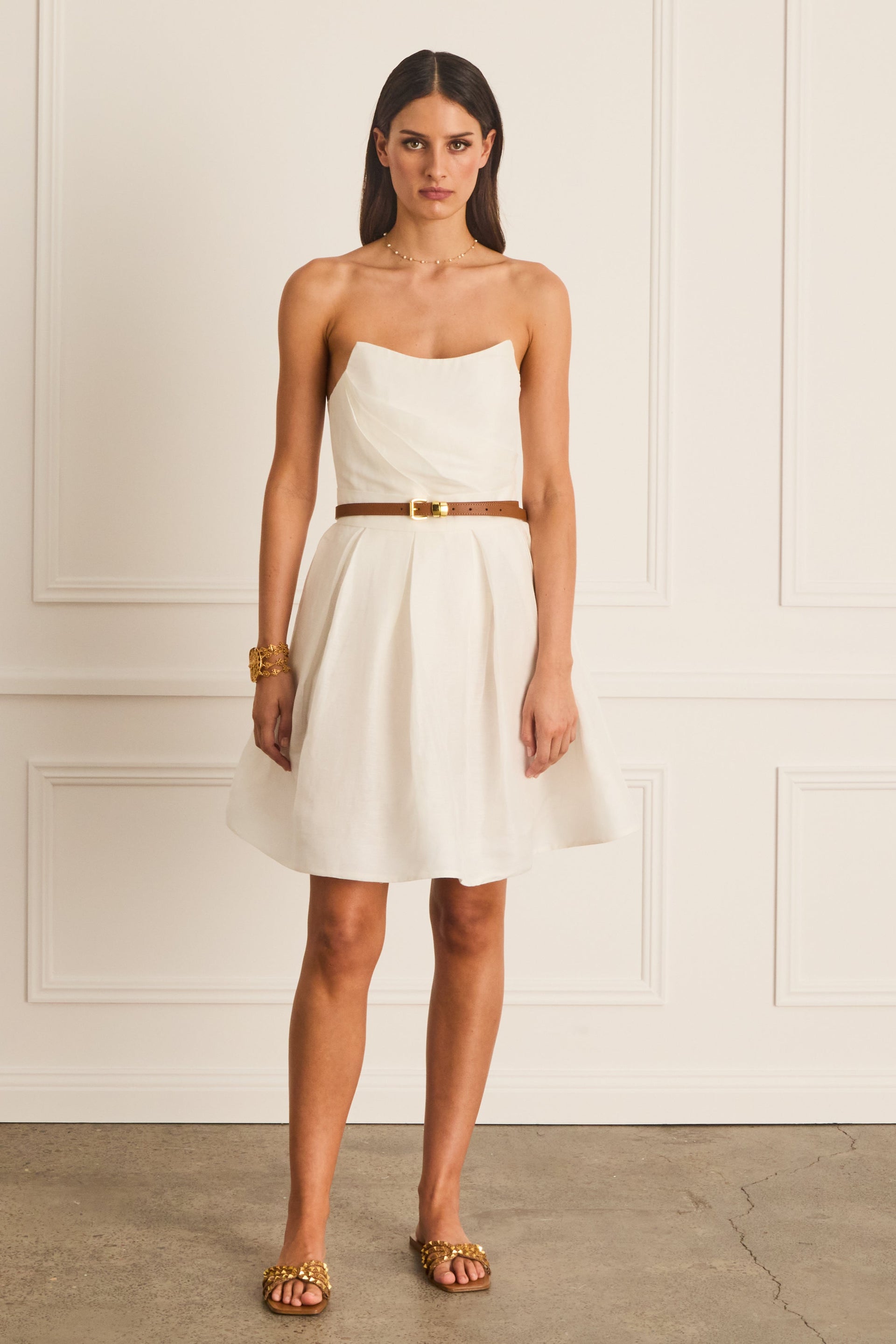 Aqua Blu Australia's Starling Simone Mini Dress is crafted in a corset-style silhouette exuding confidence and style. The strapless style adds a touch of understated elegance, while the scooped pointed neckline enhances the decolletage. Whether adorned for a night out or a special occasion, the Simone Mini Dress promises to captivate with its timeless allure and contemporary charm, making it a standout piece in any wardrobe.