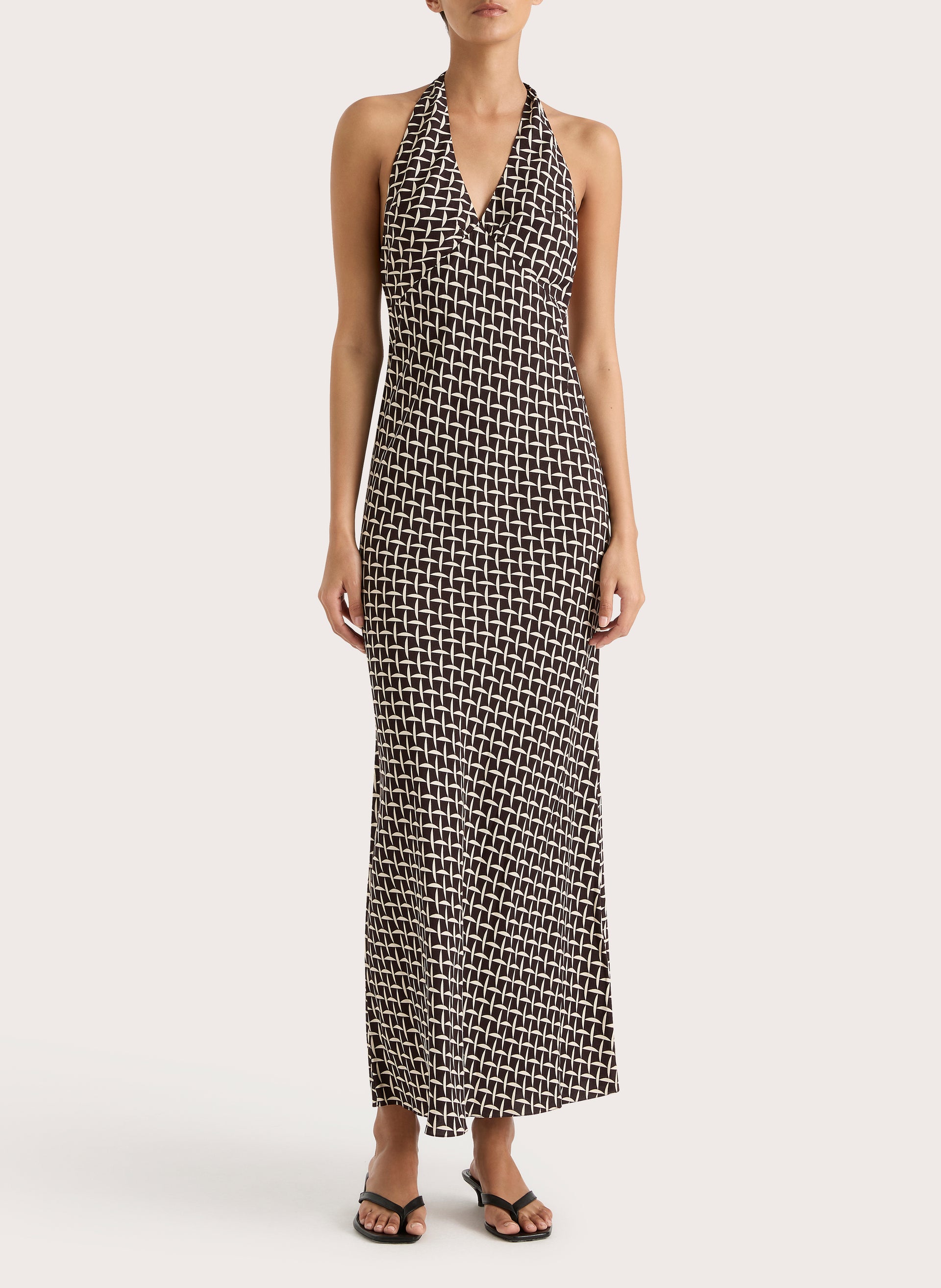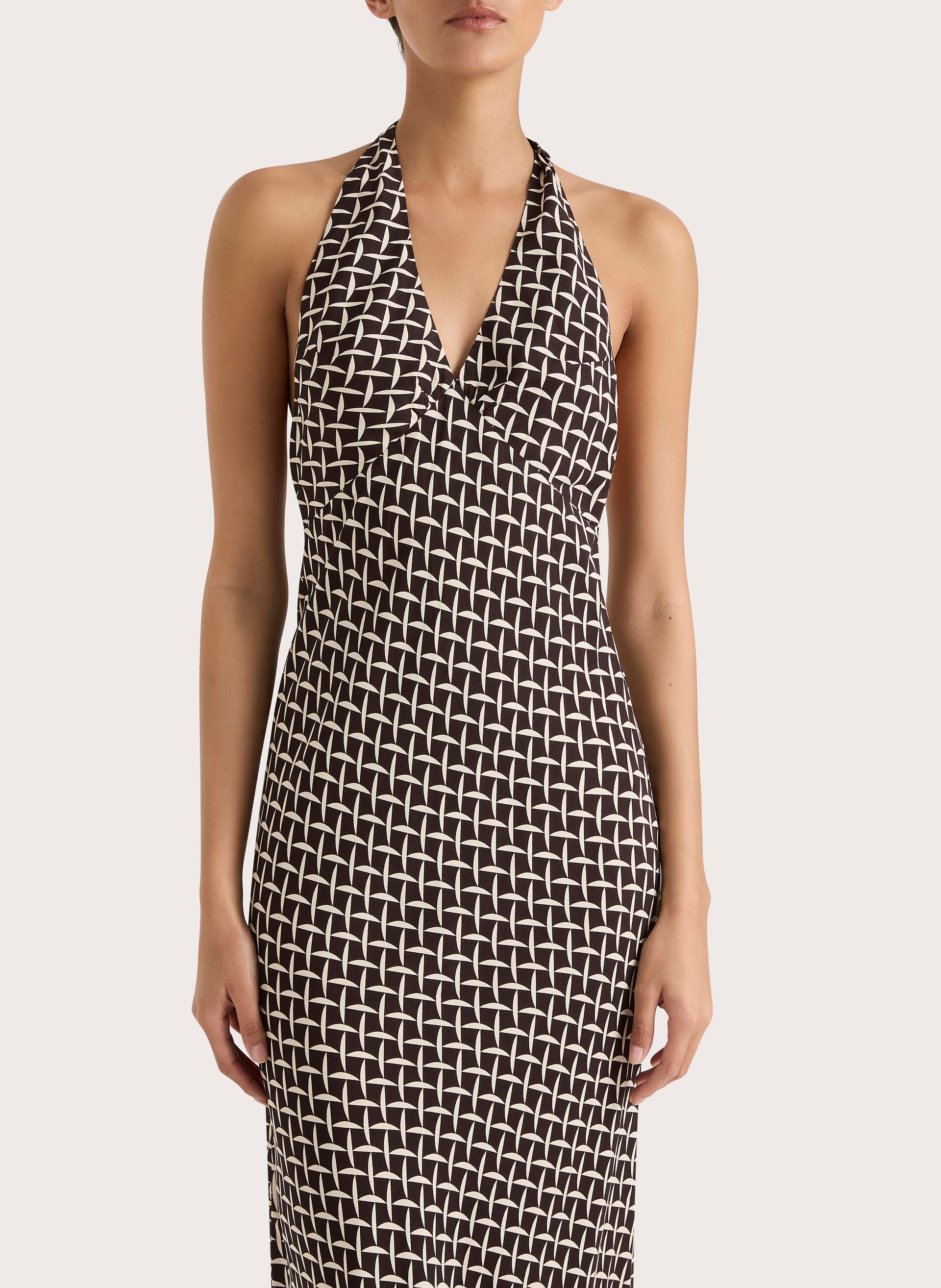 As an industry expert, I can confidently assert that the Soame Maxi Dress offers the perfect blend of style and comfort. Made with rayon crepe fabric, this bias-cut dress features a flattering v-neck and halter neck ties, adding a touch of elegance. With a backless design and zip opening at the side seam, this partially lined maxi dress is a must-have for any wardrobe.
