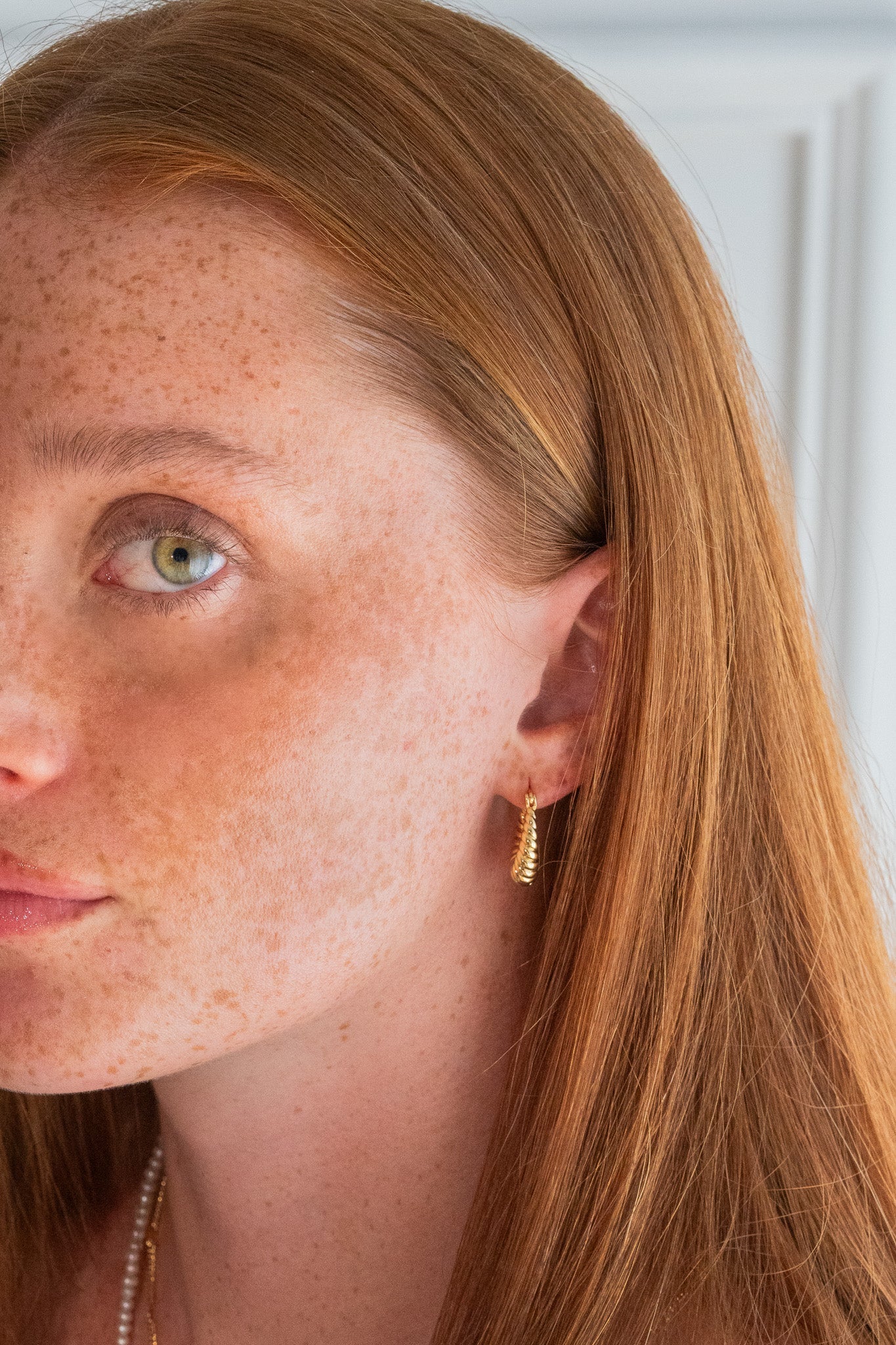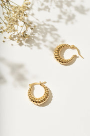 Bold meets timeless with the Sadie Hoops. Crafted in 16K gold-filled with a signature croissant twist design, these 20mm earrings bring a modern edge to a classic silhouette. The chunky shape and French lock latch closure offer both statement style and secure comfort.